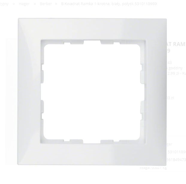 B.KWADRAT płytka czołowa z pokrywą do gniazda z uziemieniem biała